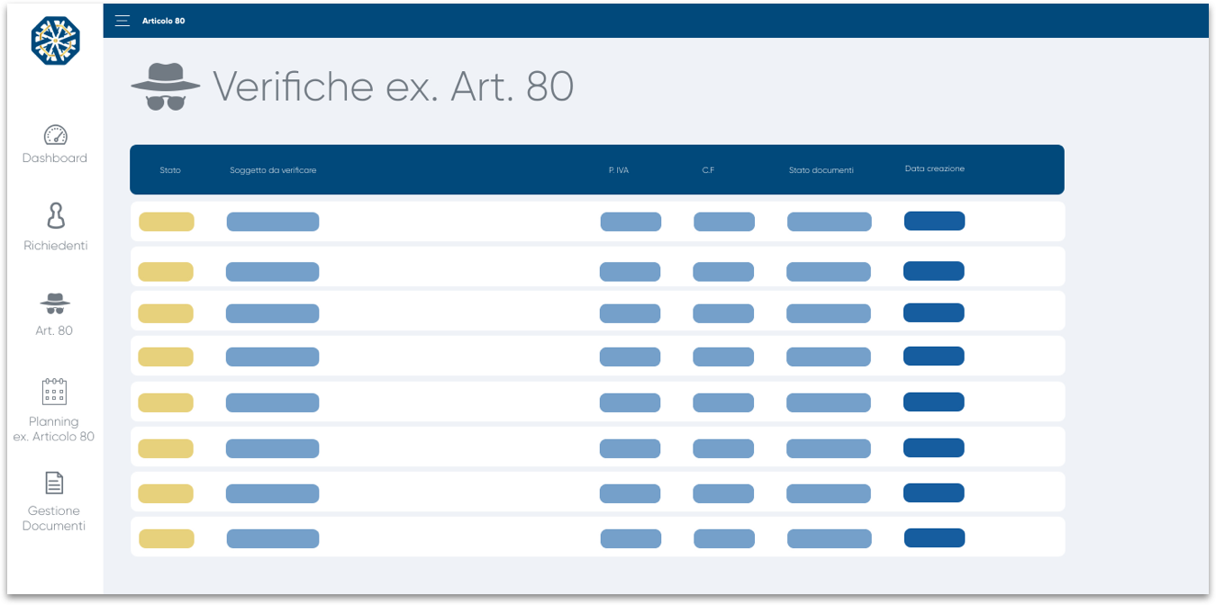 The verification of the requirements provided by art. 80 of legislative decree 50/2016, through gathering of certifications, is an onerous effort in terms of time and internal resources. For this reason, our software allows fulfilling the verifications provided by the law.