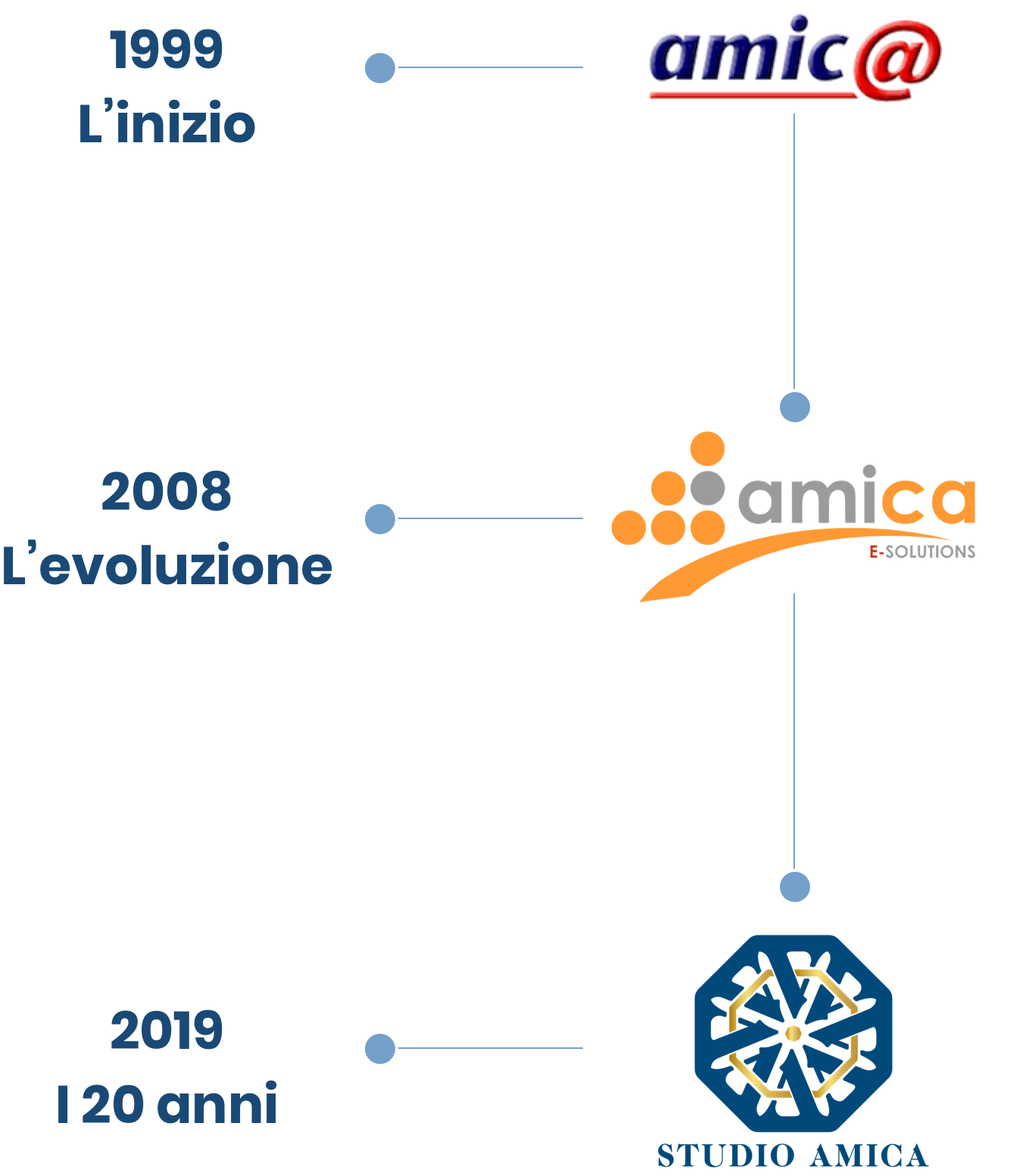 Nel 2008, con la vendita del dominio “amica.it” alla Rizzoli Edizioni S.p.A. per il rilancio della sua rivista “Amica”, AMICA I.S.P. Piccola Società Cooperativa cambiò nome in Studio Amica Soc. Coop.